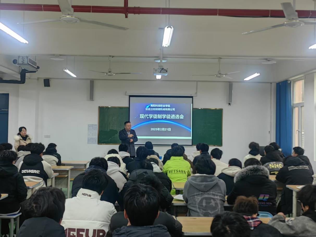 2025年2月21日,智能制造学院现代学徒制拜师大会暨三方协议签约仪式如期举行。经过前期严格的选拔,首批成功入选的学徒与来自邓州市巨晨立旺精密五金有限公司、邓州市亚泰机械由西安公司、邓州市茂鑫新能源科技有限公司的企业导师正式结对,并现场签署了校企生三方协议,标志着我院现代学徒制试点项目取得了里程碑式的进展。