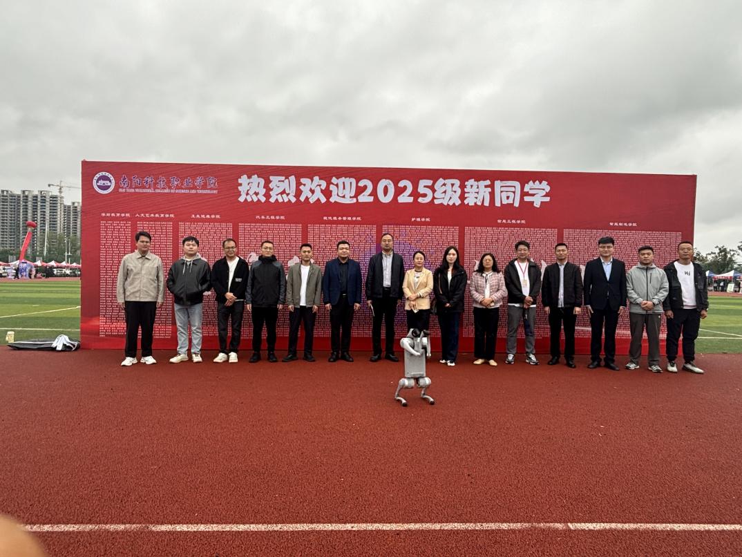 本次迎新现场的一大亮点是融入了浓厚的科技色彩。在报到区域附近,一只动作灵活、反应灵敏的机器狗吸引了众多新生和家长驻足围观。它不仅能自如地行走、跳跃、翻身,还能与现场人员进行趣味互动。此外,现场还有舞蹈机器人、工业机械臂等多种机器人亮相表演,极大地激发了新生们对前沿科技的兴趣与探索欲,为他们开启了大学学习生活的“第一堂科技启蒙课”。