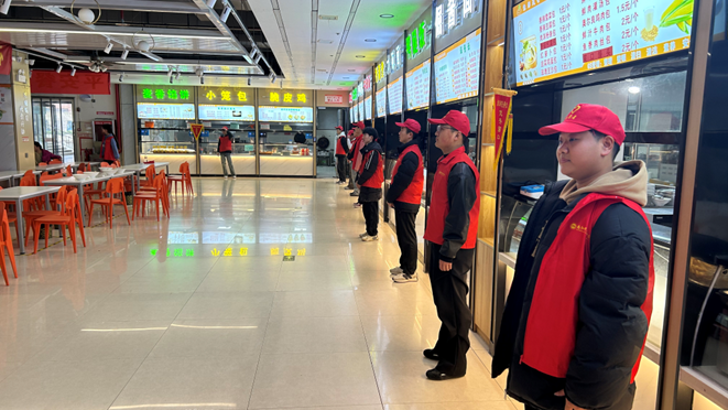 在文明餐厅活动中,志愿者们被分配到学校各个食堂的关键位置,如入口、出口及餐具回收处等。确保同学们能够有序排队取餐,减少拥挤现象并鼓励大家共同维护良好的就餐环境。