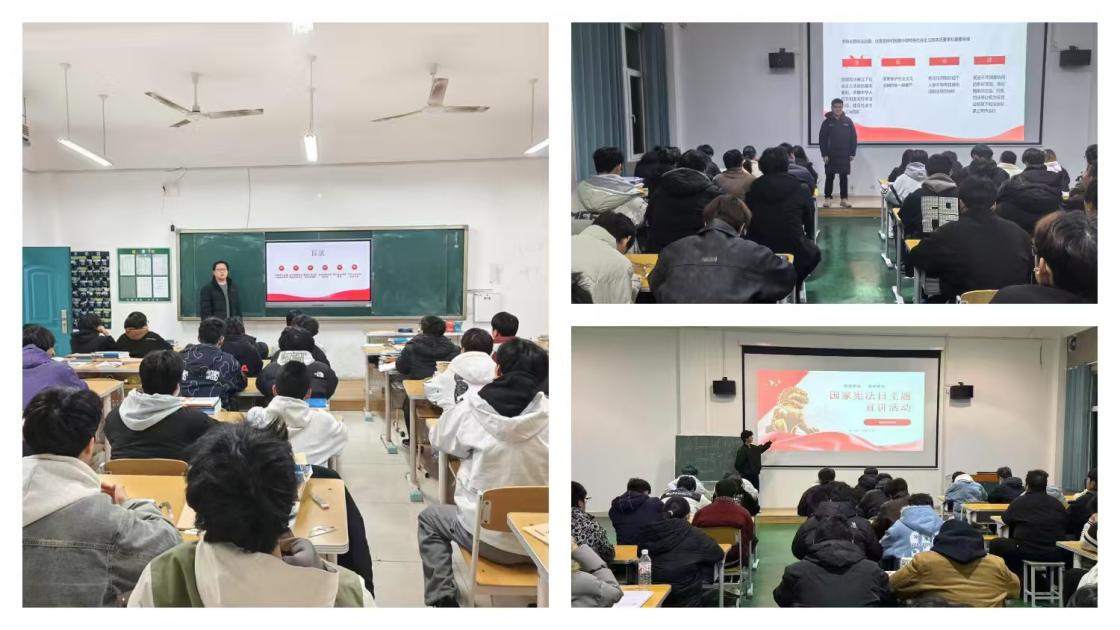 随后,各班班主任辅导员或班长团支书化身主讲人,紧扣习近平法治思想和党的二十届四中全会精神,结合宪法条文与青年成长实际,生动阐述了“法治思维是创新人才成长重要根基”的深刻内涵。他们引导同学们深入思考法治与个人发展之间的紧密联系,激发了大家学习法律、运用法律维护自身权益的热情。