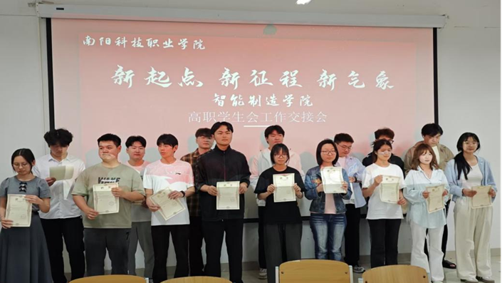 为促进学生会工作平稳有序传承、持续创新发展,2025年4月27日,智能制造学院学生会于6213大会议室举行换届交接仪式。此次仪式意义非凡,象征着新一届学生会成员正式接过“接力棒”,踏上服务同学、助力学院发展的崭新征程。