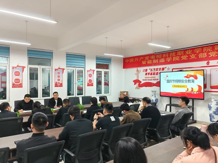 活动伊始,学院组织全体班主任、辅导员在党员会议室召开国庆节假期安全教育工作会议。学生科科长李行结合高校特点及案例,针对国庆人流大、学生外出多的实际,明确交通、消防、网络等重点领域,要求班主任、辅导员全面覆盖安全教育。最后副院长杨帆总结强调:假期安全教育是保障学生安全、维护校园稳定的关键,教师应重视落实、杜绝形式,让安全意识扎根,筑牢假期防线。