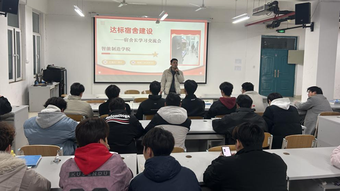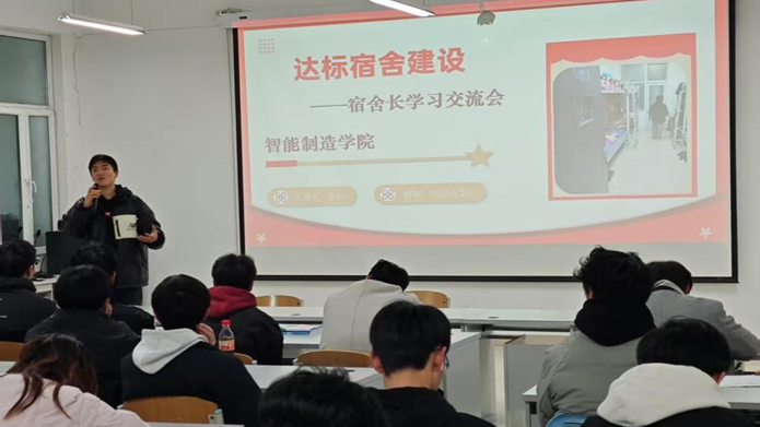 为了进一步提升学生宿舍的管理水平,营造健康、和谐、文明的生活环境,智能制造学院于3月5日晚在科圣楼大会议室成功举办了达标宿舍建设--宿舍长交流会。本次会议由学生科长李行主讲,各班宿舍长代表及学生干部共180余人参会。会议围绕宿舍管理规范、安全责任落实及文化建设展开,旨在以标杆引领推动全校宿舍提质增效。