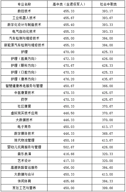 各类别类型考生拟录取控制线如下: