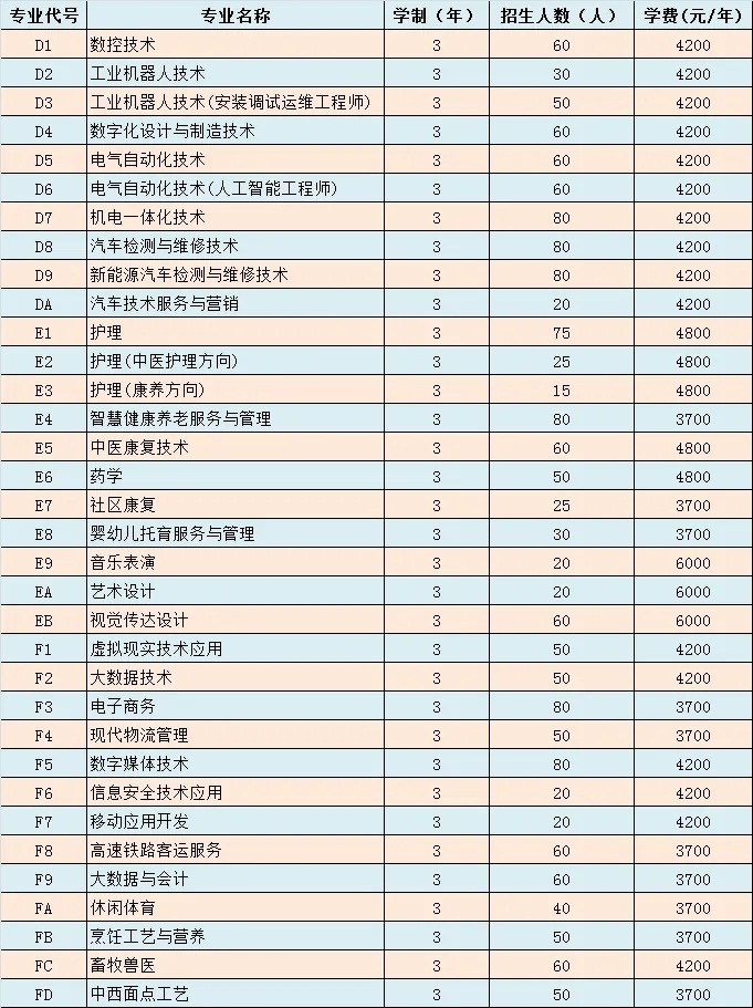 南阳科技职业学院2025年单招专业志愿代码及计划