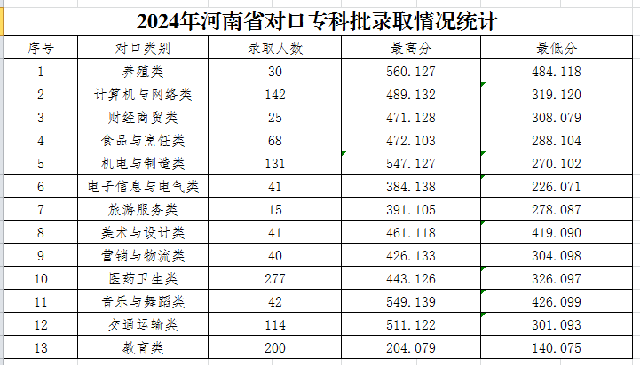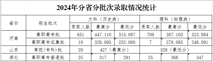 南阳科技职业学院2024年分省分批次招生录取分数线