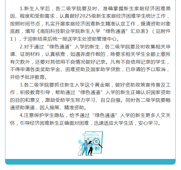 南阳科技职业学院关于做好2025级新生入学“绿色通道”工作的通知